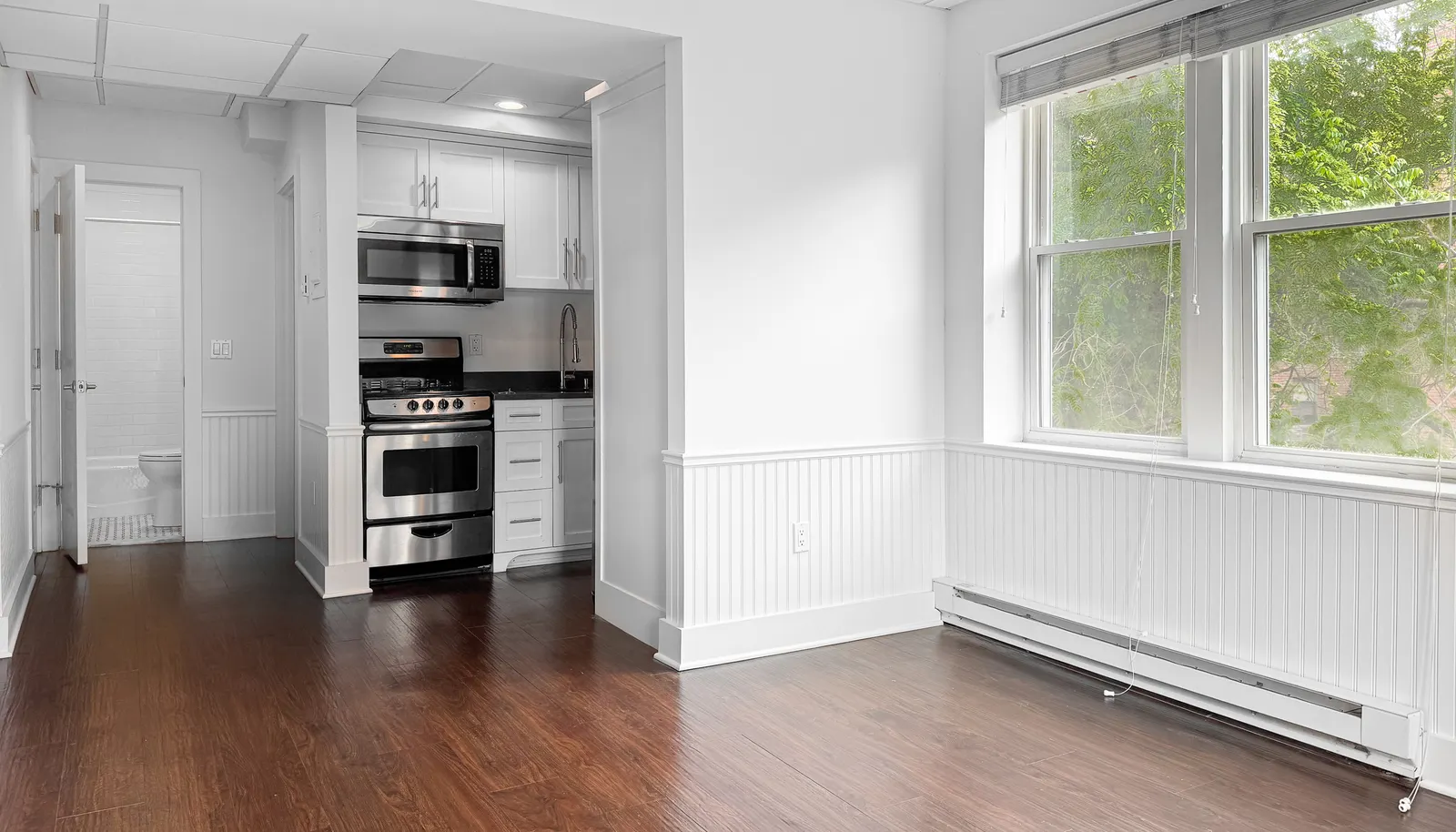 Remodeled studio reconfigured to include a separate enclosed room with a window and closet, ideal as a bedroom or den. All new kitchen with granite...